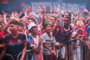 No momento do embarque no ônibus que levou a delegação do Fortaleza ao Aeroporto Internacional Pinto Martins, todos os funcionários do clube, se reuniram na porta do Centro de Excelência Alcides Santos para uma despedida emocionante. <<< SE INSCREVA NO CANAL DO FUTEBOL E RAPADURA NO YOUTUBE >>> Contra a LDU, na final da Copa Sul-americana, o Fortaleza faz o jogo mais importante em 105 anos de história. Esta é a primeira vez que um clube nordestino chega a decisão de um título continental. Além disso, o bom desempenho na competição fez o torcedor acreditar muito na possibilidade do time tricolor ser campeão da sula. Em outras oportunidades, os funcionários que fazem o Fortaleza já foram beneficiados com a campanha do time tricolor. As premiações que a equipe recebia por avanço de fase da sulamericana eram dividida com as pessoas que fazem o Pici. O Fortaleza enfrenta a LDU, neste sábado, 28/10, às 17h, em Maldonado pela grande final da Conmebol Sul-americana. Leia Mais | Neymar tem diagnóstico de ruptura de ligamento do joelho