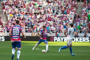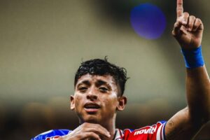 Autor do gol que deu a vitória do Fortaleza em cima do Horizonte, pela estreia do time tricolor no Campeonato Cearense, o atacante Kervin Andrade deve permanecer no Pici por mais um tempo. Emprestado pelo Deportivo La Guaira/VEN, o jogador de 18 anos despertou interesse do Tricolor de Aço que planeja adquirí-lo em definitivo, uma vez que o jogador já treina com a equipe profissional do Laion. <<< SE INSCREVA NO CANAL DO FUTEBOL E RAPADURA NO YOUTUBE >>> O contrato de empréstimo do jogador entre La Guaira e Fortaleza vai até o junho de 2024, por isso, o time tricolor precisa se mexer o mais rápido possível para adquirir os direitos econômicos do jogador. Kervin foi revelado pelo clube venezuelano e é considerado uma jóia no seu país. O jogador se tornou profissional aos 15 anos. Neste período, o atleta atuou em 57 partidas, marcando seis gols em duas temporadas e meia. Em 2024, o jogador foi vice-artilheiro do Laion na Copinha em 2024, marcando 3 gols, ficando atrás apenas do centroavante Iarley. No time profissional, fez sua estreia no ultimo sábado, marcando o gol da vitória do Leão contr ao Horizonte, após assistência de Yago Pikachu. Leia mais | FIFA marca audiências envolvendo Fortaleza, Colo-Colo e Lucero